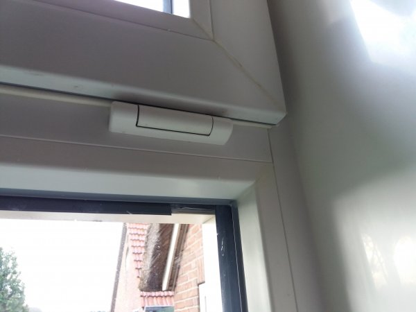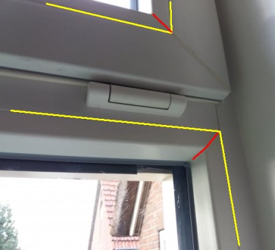 het kozijn, in de dag geplaatst als je WEL 38 mm diepte hebt in het kozijn om de bovengeleider te